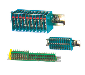 绝缘件采用阻燃聚碳酸酯。导电片连接采用组合螺钉压接,试验型接线座双层结构,增加了接线组合。额定工作电压660V,连接导线截面 0.75~2.5mm2 ,适用于二次回路及小负载的过渡连接。