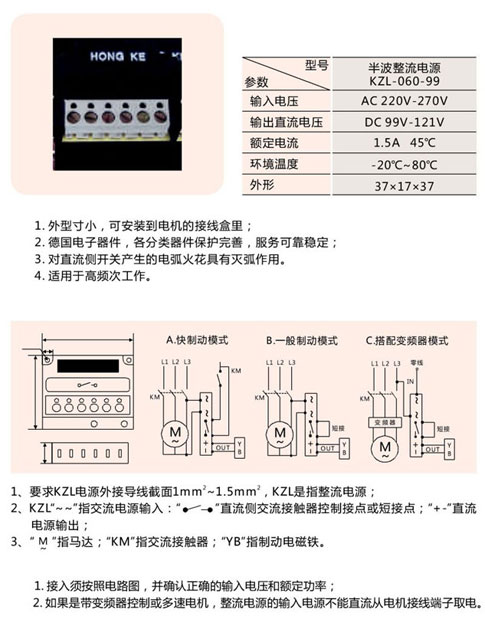 产品系列 : 整流电源 产品规格 : 产品 代码 : KZL-060-99 适用电机 : OEM :